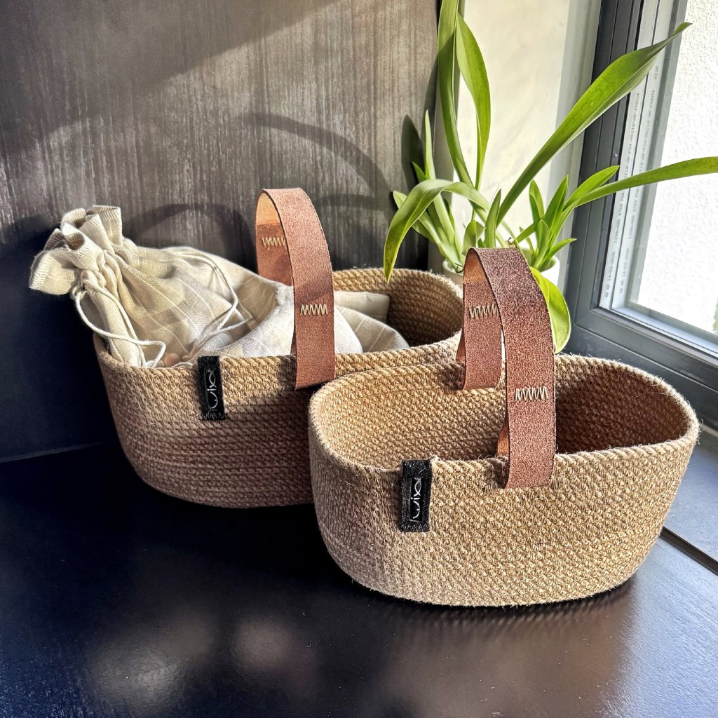 Díky jednoduchým liniím jsou mé košíky z juty nadčasově a velmi přirozeně v jakémkoliv stylu příbytku. Jak v moderním minimalistickém nebo industriálním, i vintage, rustikálním, boho stylu či provence. Krásně doplní přírodní materiály, jako je dřevo, ale i zjemní a zútulní materiály moderní jako beton, kov i sklo.