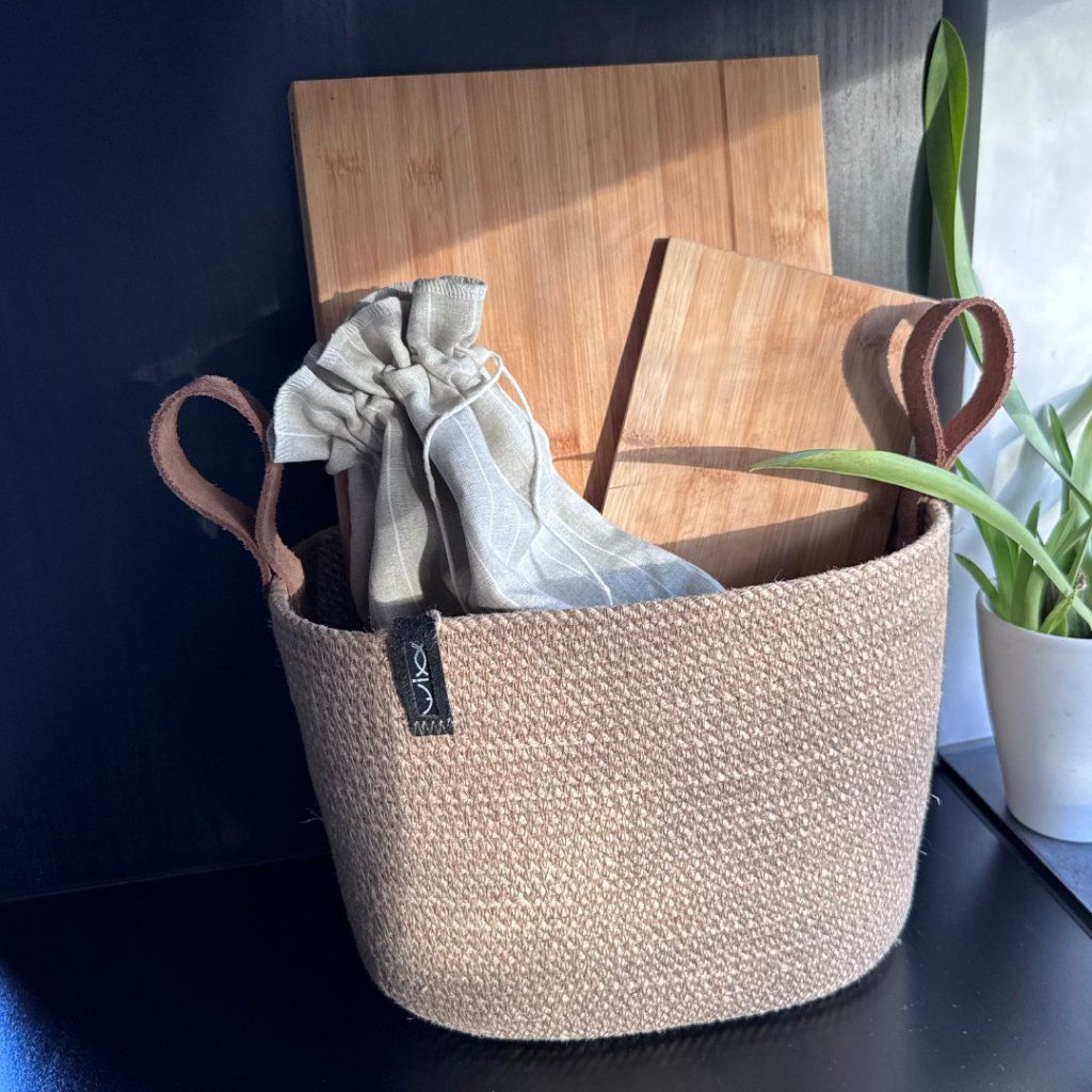 Díky jednoduchým liniím vypadá tento výrobek z juty velmi přirozeně v moderním minimalistickém či industriálním stylu a výborně zapadne i do vesnického či francouzského stylu. Krásně a nadčasově doplní přírodní materiály, jako je dřevo, ale i zjemní a zútulní materiály moderní jako beton, kov i sklo.