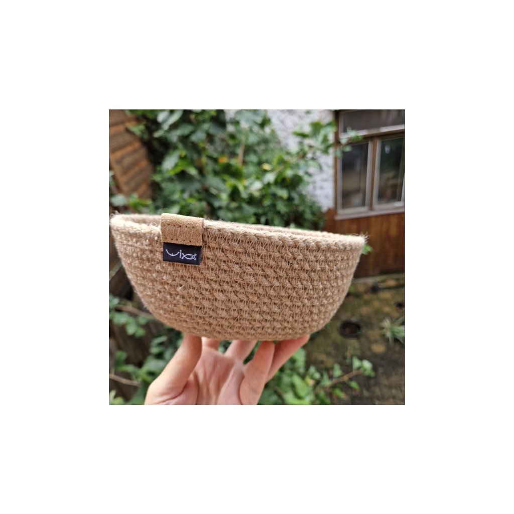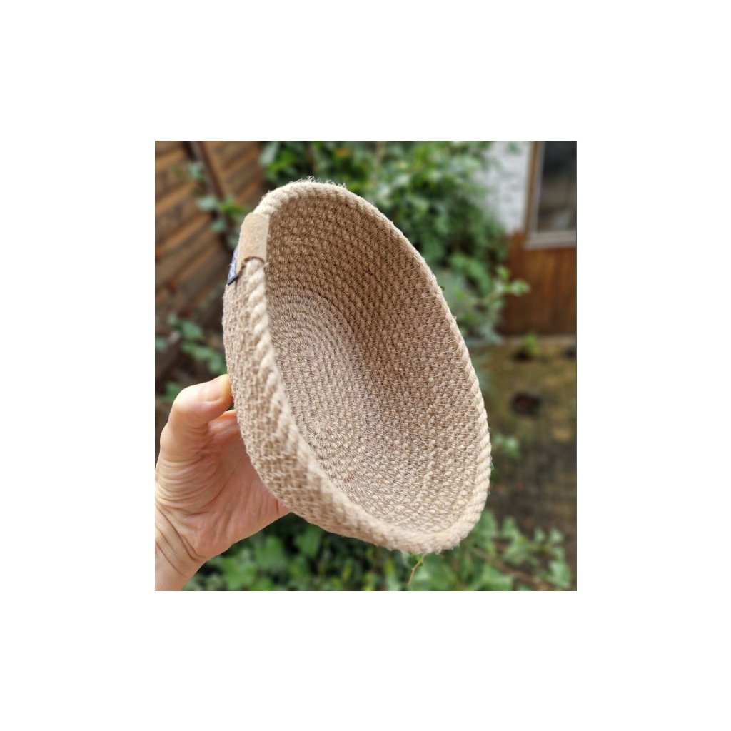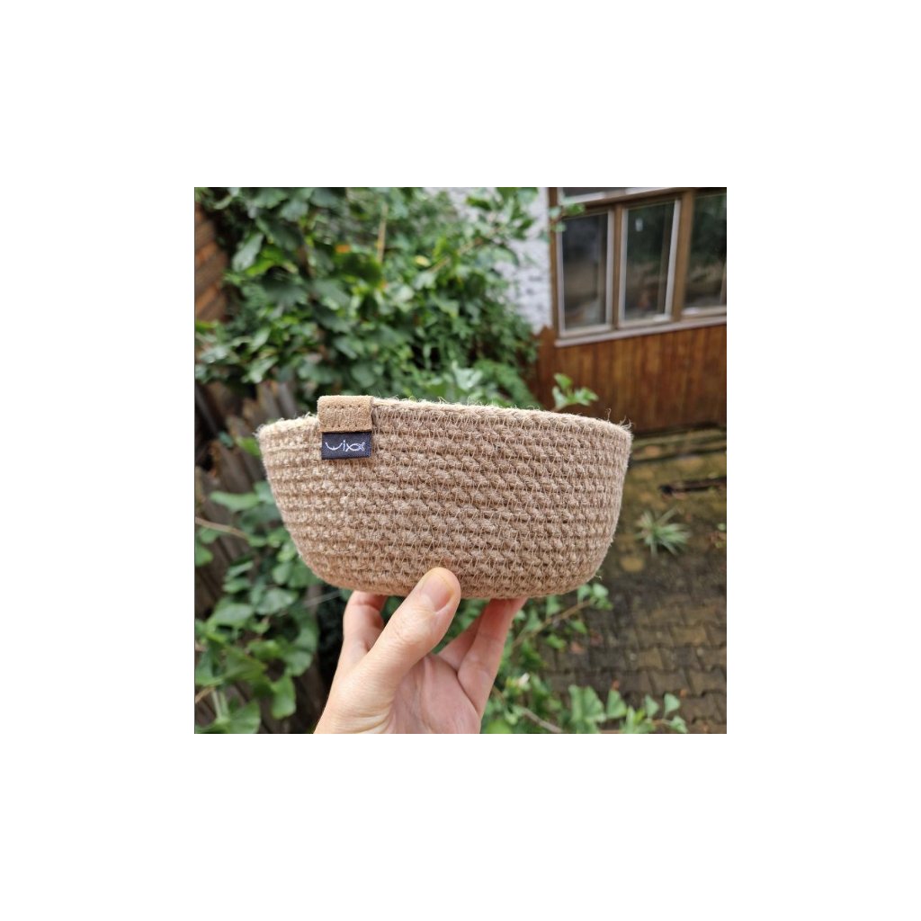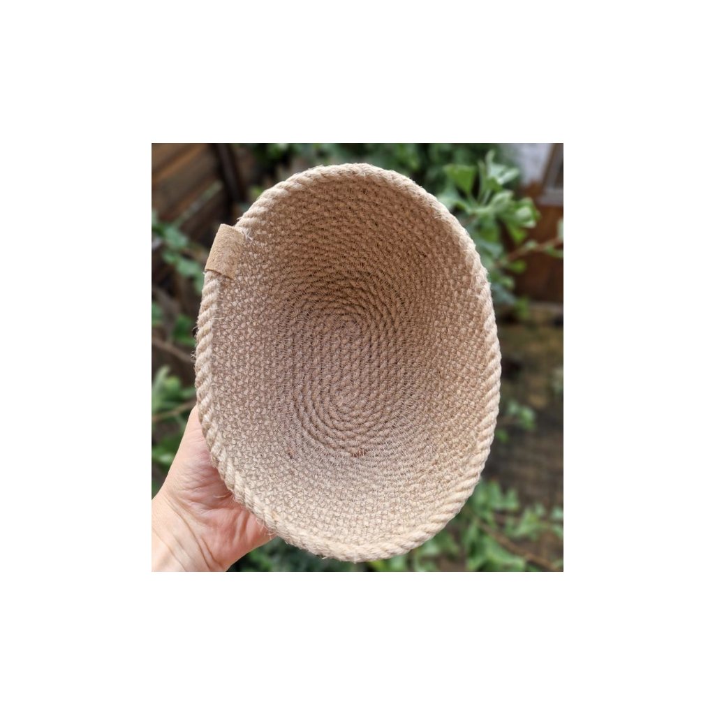 Mini oválná hlubší ošatka či košíček z přírodní juty na kynutí malého chleba nebo na klíče, sponky či jiné drobnosti.